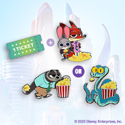 *Pandango Pin Bundle is non-refundable. While supplies last. Domestic shipping will be added at checkout. Movie ticket is non-refundable and non-exchangeable. You must be 18 years of age or older to purchase a bundle. The Official Disney Exclusive Collectible Pin will begin shipping in the month of November. Please use a physical U.S. address where the item can be delivered. Once carrier confirms delivery, Fandango is not responsible for lost or stolen deliveries. Fandango reserves the right to modify or cancel this offer at any time and without notice. See https://redeem.fandango.com/products/pandango-pin-bundle for full terms and conditions.